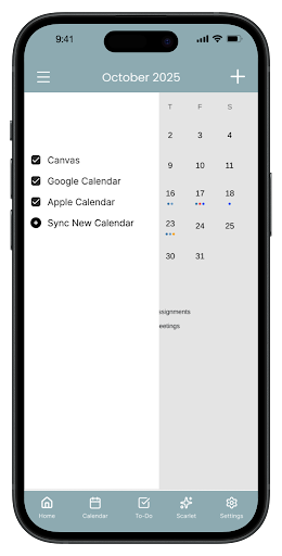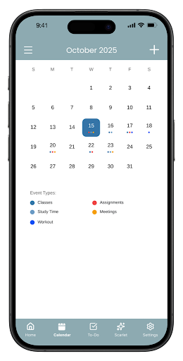 CalendR is an AI-integrated calendar app designed to unify Canvas and other third-party calendars into a single, streamlined experience.