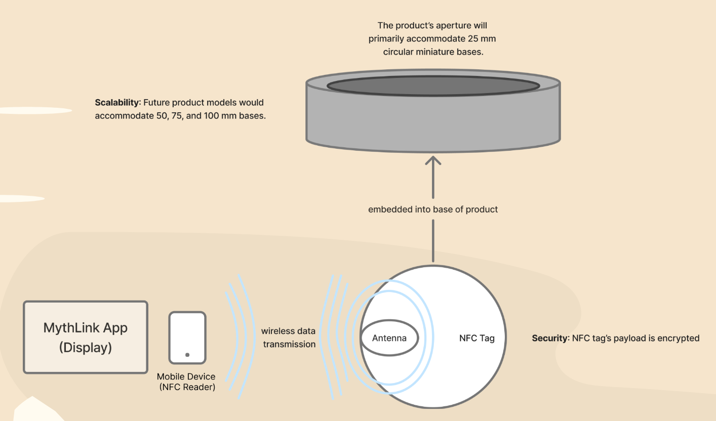 HeroBase™ is a hybrid tabletop gaming product that bridges physical miniatures and digital character management using NFC-enabled miniature bases and a companion mobile app (MythLink). The product is designed to streamline game-play for tabletop role‑playing games (TTRPGs) by reducing setup time, minimizing bookkeeping, and preserving immersion at the table.
